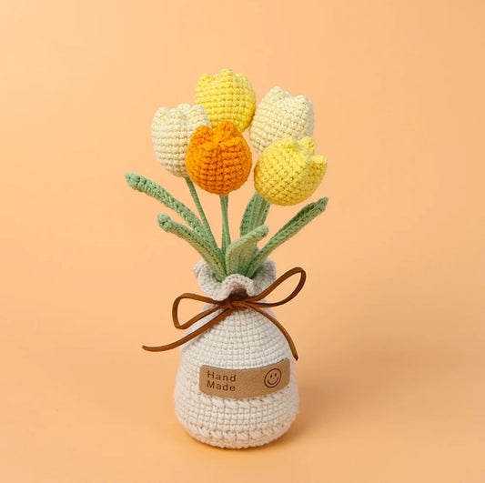 A-Crochet Flowers in the Pot, Home Decor, Crochet Tulip Decoration, Crochet Flower Decor, Personalized Potted Plant, Knitted Plant Gift