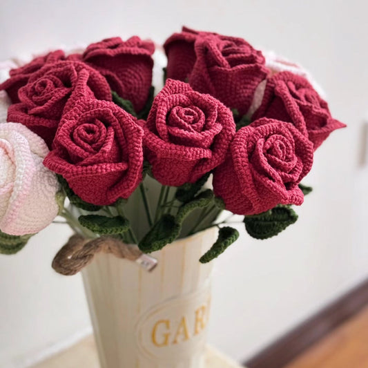 A-Crochet Rose, Handmade Knitted Flowers, Crochet Flower Bouquet, Personalized Gift for Birthday/Anniversary, Home Decor, MultiColor Option