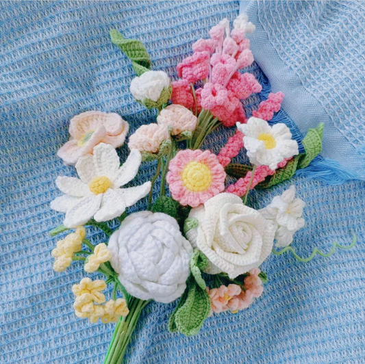 A-Crochet Lily bouquet, Set of 7, Crochet Flower, Tulip, Lily of the Valley, Handmade gift, Finished product, Birthday/Anniversary, Gifts for her