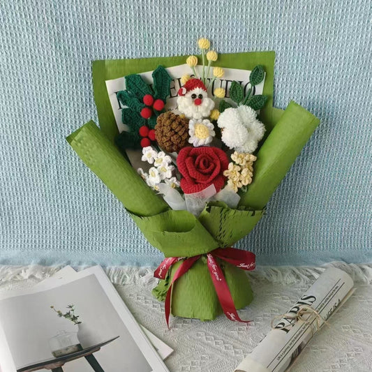 A-Crochet Flowers Bouquet Handmade, Finished Product Rose for Anniversary,Birthday, girlfriend mother forever christmas santa xmas love gift
